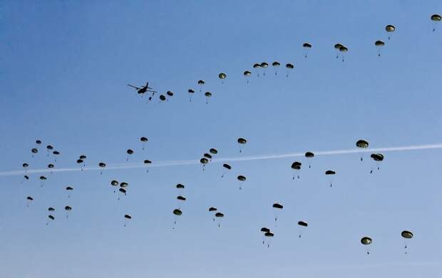 По данным украинской разведки, российские спецназовцы якобы используют парашютные системы типа "крыло", позволяющие осуществлять приземление в выбранную точку десантирования, в том числе в условиях ограниченной видимости и по наведению по радиомаяку.